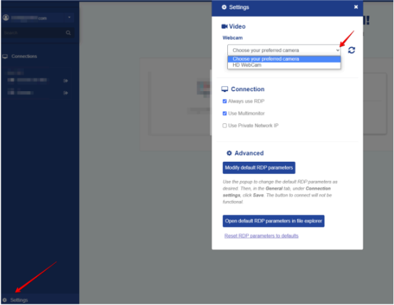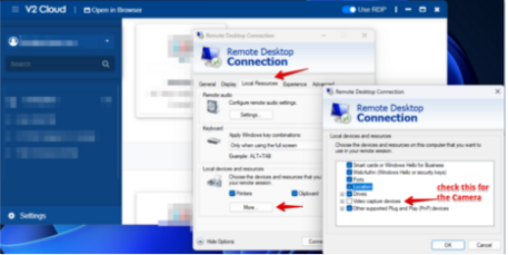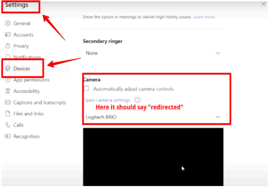 Account, then proceed with the following steps to ensure camera redirection is active: