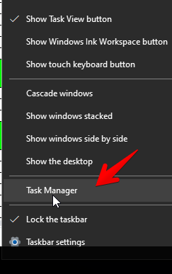 - Open task manager by typing in your windows search bar or right click on your task bar and select task manager