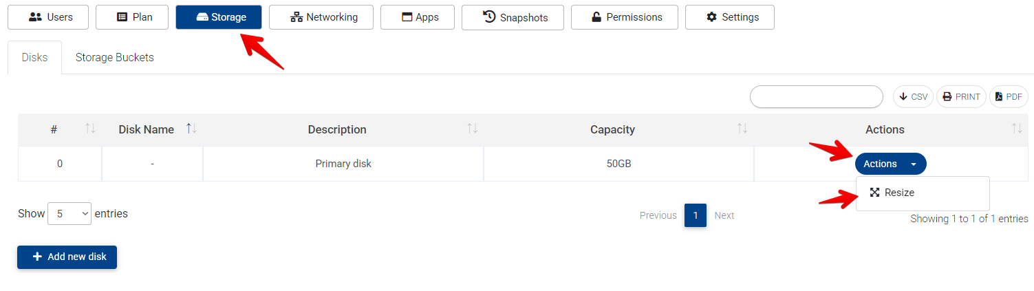 - Go to storage>actions>resize.