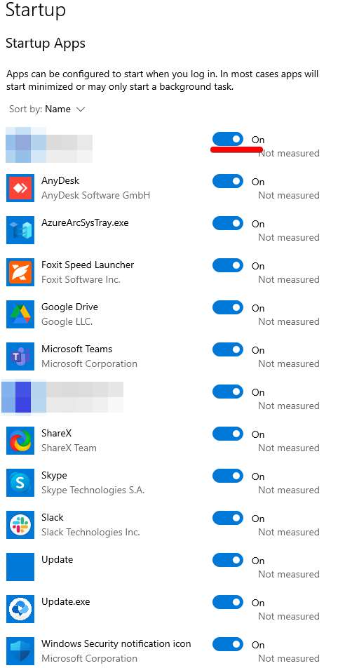 - You will then be redirected to all startup applications, here you can click on the on/off switch, the app will then no longer open when you login