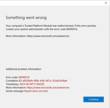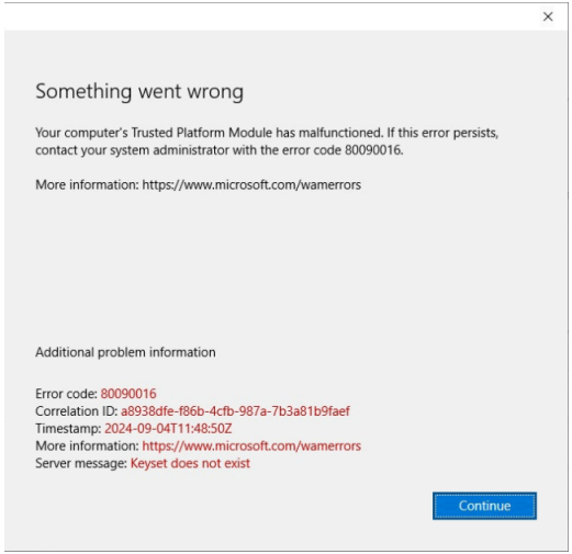 365 account and will most likely see this error again, select “Continue” and your Office will be