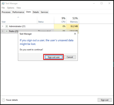 5. A pop up will appear and click on Sign out user.