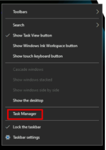 2. Open Task Manager right clicking the Taskbar