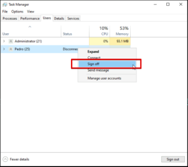 4. Right click the user and click on Sign Off