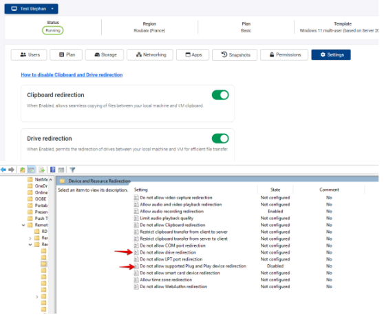 If drive redirection is still not working, check under the VM Settingss under the dashboard and