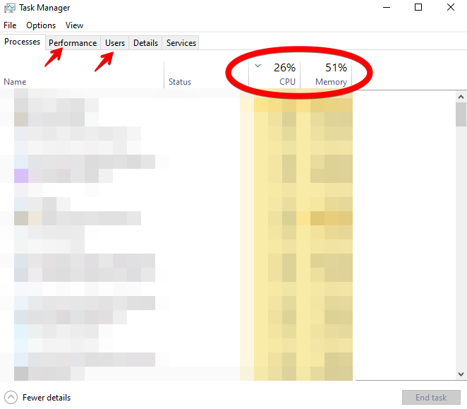 - Here you can see the performance of the cloud computer, you can also go to the performance tab and see the usage as well, for more detailed usage you can go to the user tab and see which users are using more resources